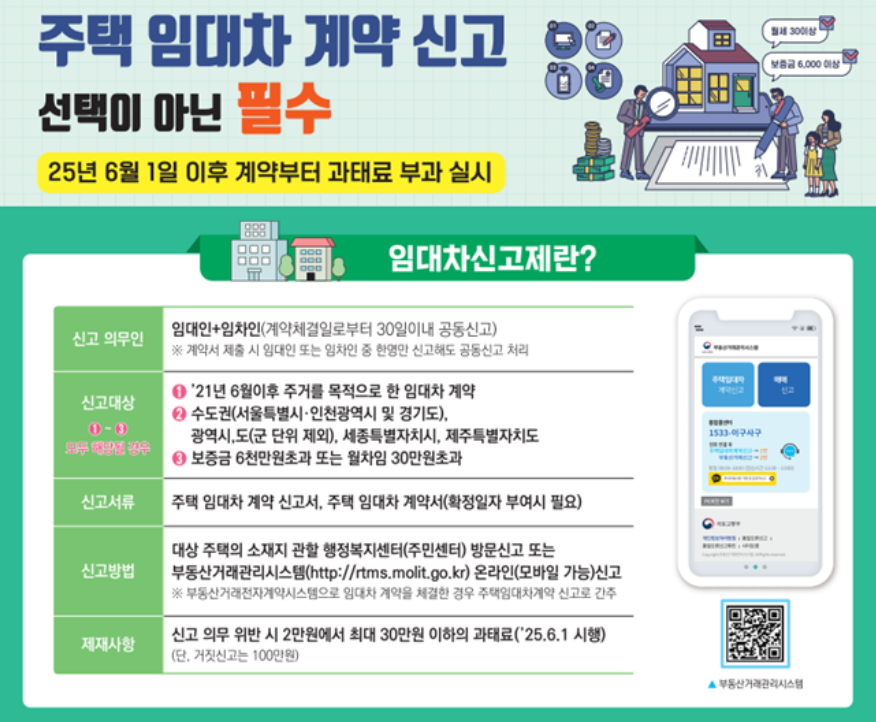 2025년 6월부터 주택 임대차 계약 신고제는 본격 시행됩니다. 이번 제도는 단순 규제를 넘어 정보 비대칭 해소와 주거 안정성 강화를 위한 시스템 기반 정책입니다. 올바른 제도 정착을 위해 모든 임대인과 임차인들의 계약 즉시 신고는 필수입니다!