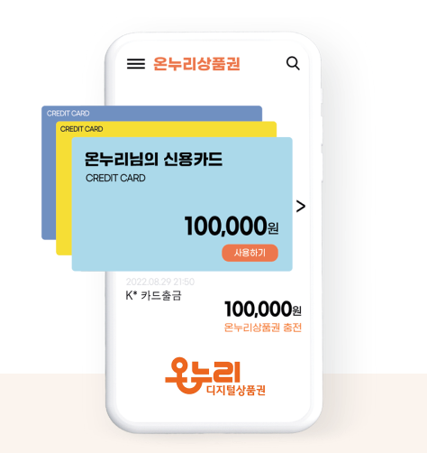 온누리상품권 앱을 통해 상품권을 구매(충전)하여 등록한 카드로 결제할 수 있습니다.
