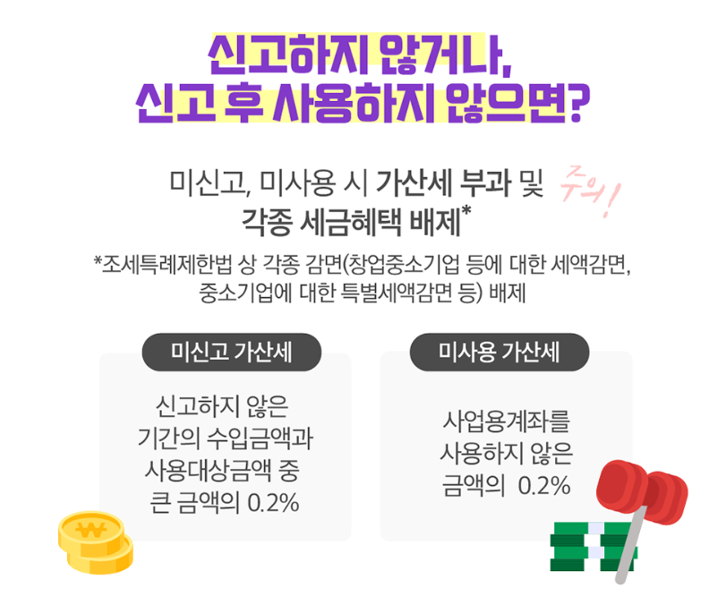 미신고, 미사용 시 가산세 부과 및 각종 세금 혜택에서 배제됩니다.
