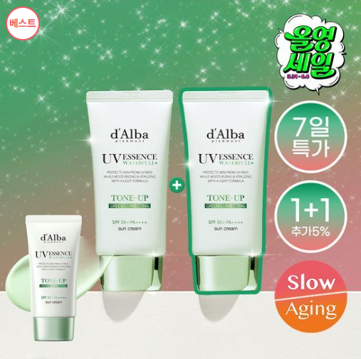생기UP!톤업 선크림. [7일특가/붉은기보정] 달바 그린 톤업 선크림 듀오 기획(50ml+50ml) 51,000원 32,130원