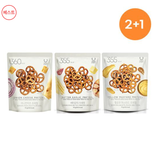 추천템3. 딜라이트 프로젝트 프레첼 70g 3종 택1 (어니언치즈/버터갈릭/머스타드) 2,400원 2,160원~