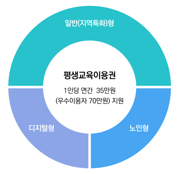 평생교육이용권이란 평생교육법 제2조 등에 따라 학습자 본인의 학습 요구에 따라 자율적으로 학습 활동을 결정하고 참여할 수 있도록 정부가 제공하는 평생교육이용권입니다.