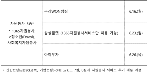 ㆍ행정안전부·여성가족부 등: 자원봉사 신청 및 이력 조회