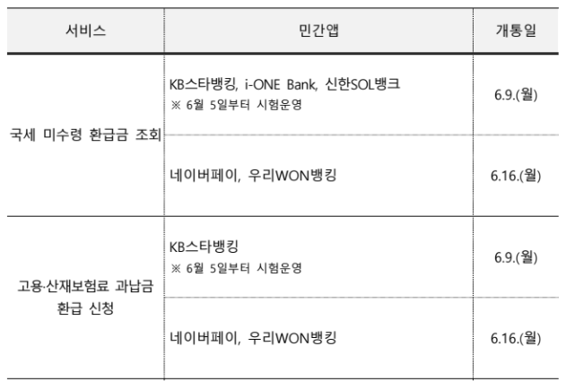 국세 및 고용·산재보험료 환급 서비스, 이제 민간 앱에서 편리하게 이용하세요 | 행정안전부>
