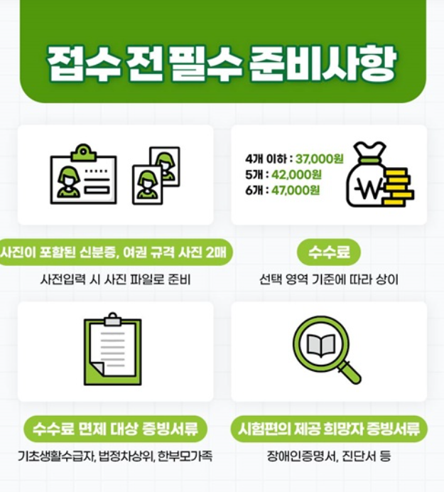 응시수수료, 사진, 신분증, 증빙서류 등 필수 준비물을 미리 챙겨 접수 과정에서 불편이 없도록 준비하시길 바랍니다.
