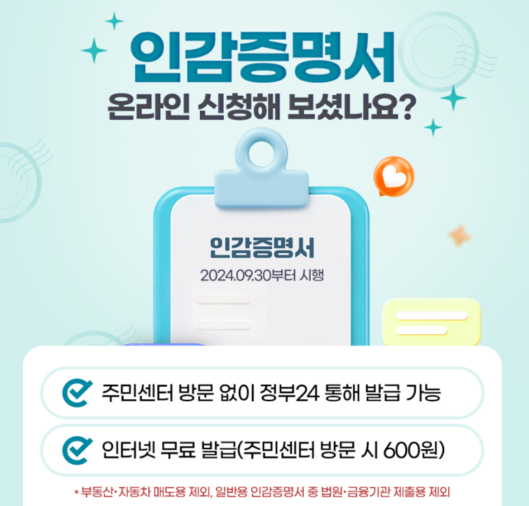 2024년 9월 30일부로 인터넷에서 인감증명서 온라인 신청이 가능해졌습니다.