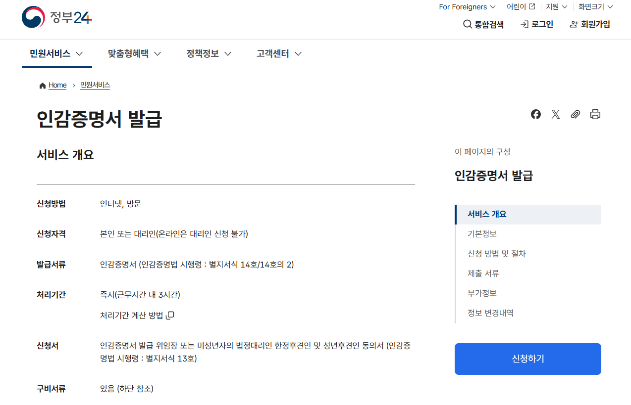 인감증명서 발급 | 민원안내 및 신청 | 정부24