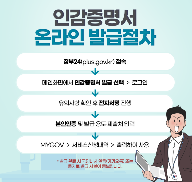 ※ 발급 완료 시 국민비서 알림(카카오톡) 또는 문자로 발급 사실이 통보됩니다.