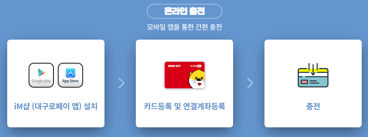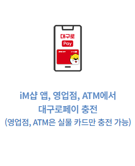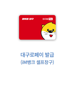 iM샵 앱을 다운로드 후 회원가입 → 본인 인증 → 대구로페이 카드 발급 신청 → 앱 내 등록 후 사용 가능