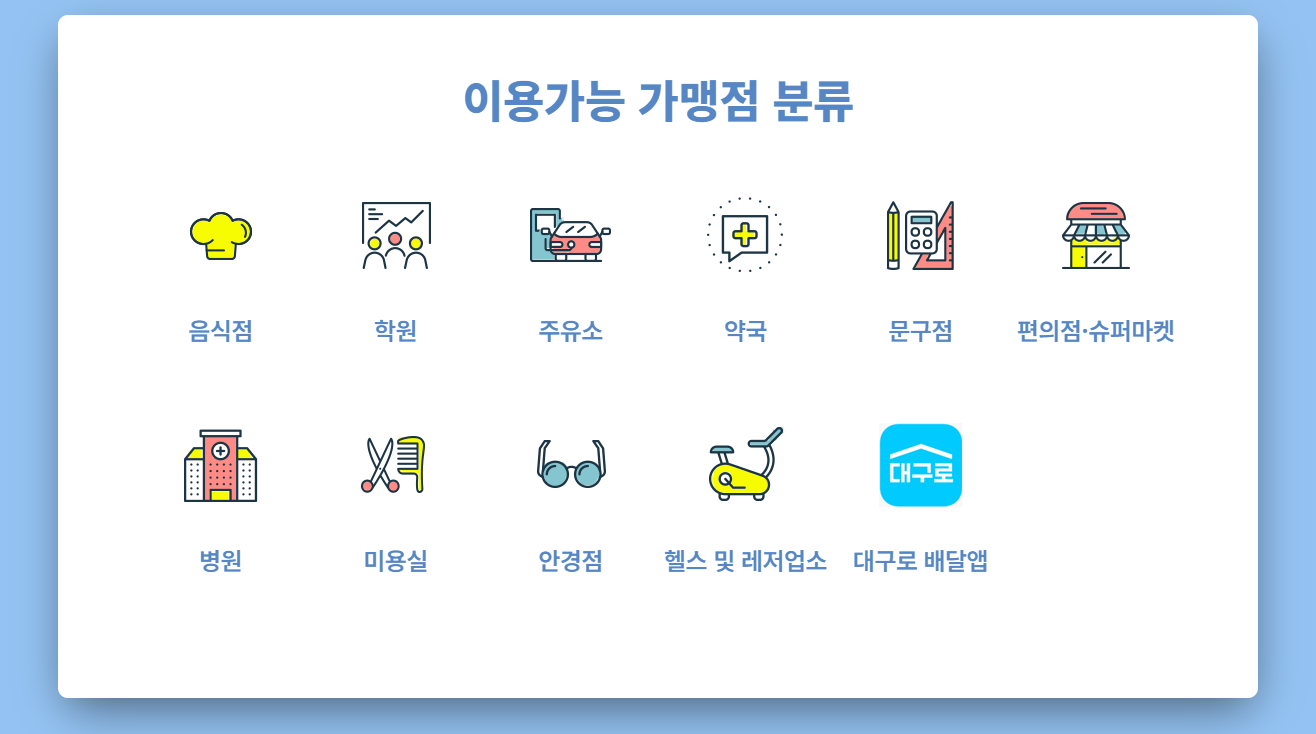 실물카드: 대구광역시 내 카드 단말기 설치된 가맹점 어디든 이용 가능