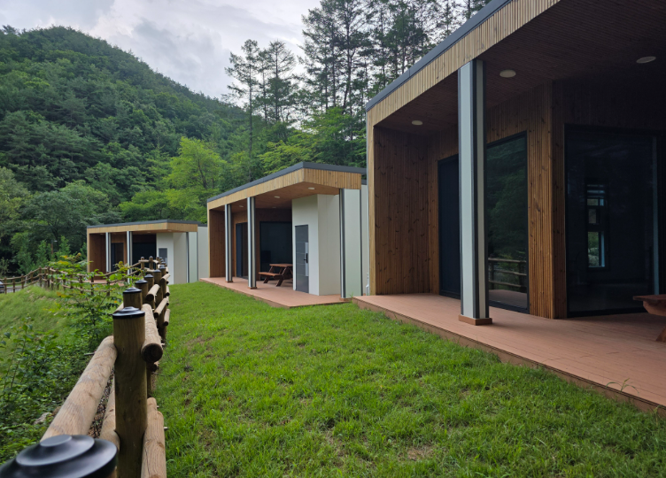 국립금산자연휴양림의 건축 및 가구는 국산 원목을 최대로 활용함에 주안점을 두었으며, 객실 내 외부에서 자연친화적인 휴양림 이용을 위한 최적의 조건이 갖추어져 있습니다.