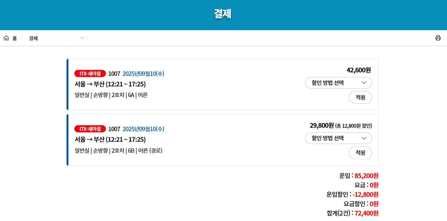 경로우대할인은 별도의 복잡한 절차 없이 일반 예매 과정에서 자동 적용됩니다.