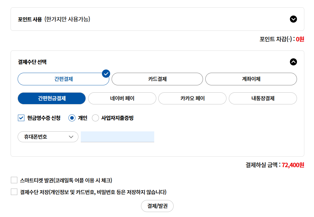 ㆍ중복 할인 불가 : 코레일 멤버십 할인, 제휴카드 할인과 중복 불가
